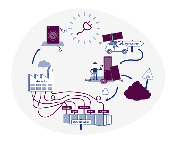 Schadelijke stoffen – zoals cfk’s, kwik en batterijen – worden verwijderd en op een verantwoorde manier gerecycled of vernietigd. Gerecyclede materialen worden hergebruikt bij het maken van nieuwe producten. Deze materialen noemen we secundaire grondstoffen; in tegenstelling tot primaire grondstoffen, die rechtstreeks uit de natuur komen. Het gebruik van secundaire grondstoffen zorgt ervoor dat we het milieu minder belasten en dat we minder CO2 uitstoten. Meer informatie over het scheiden en recyclen van elektrische apparaten vind je op de website van Wecycle.